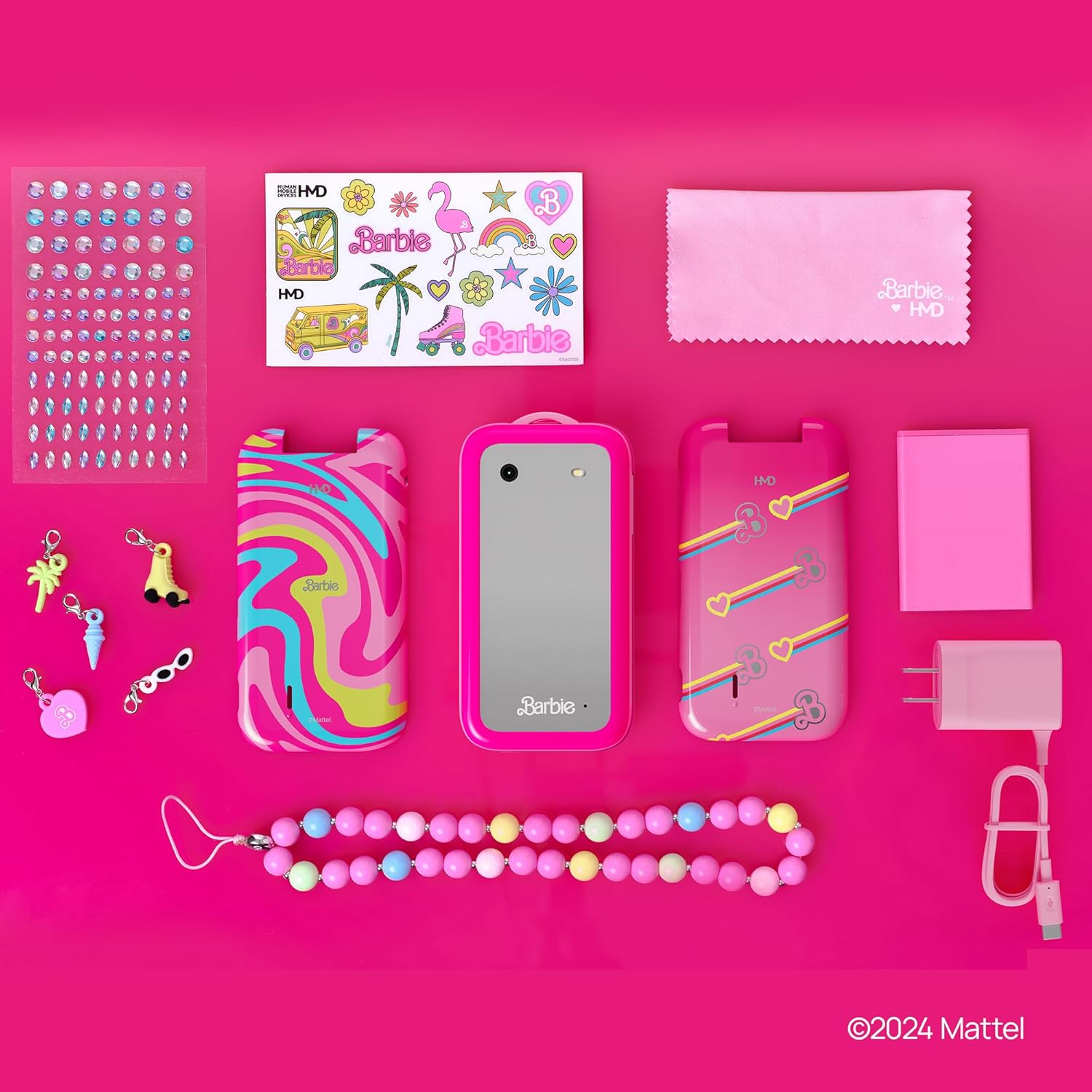 Flip phone – this is no toy. Call and text with the Barbie phone.