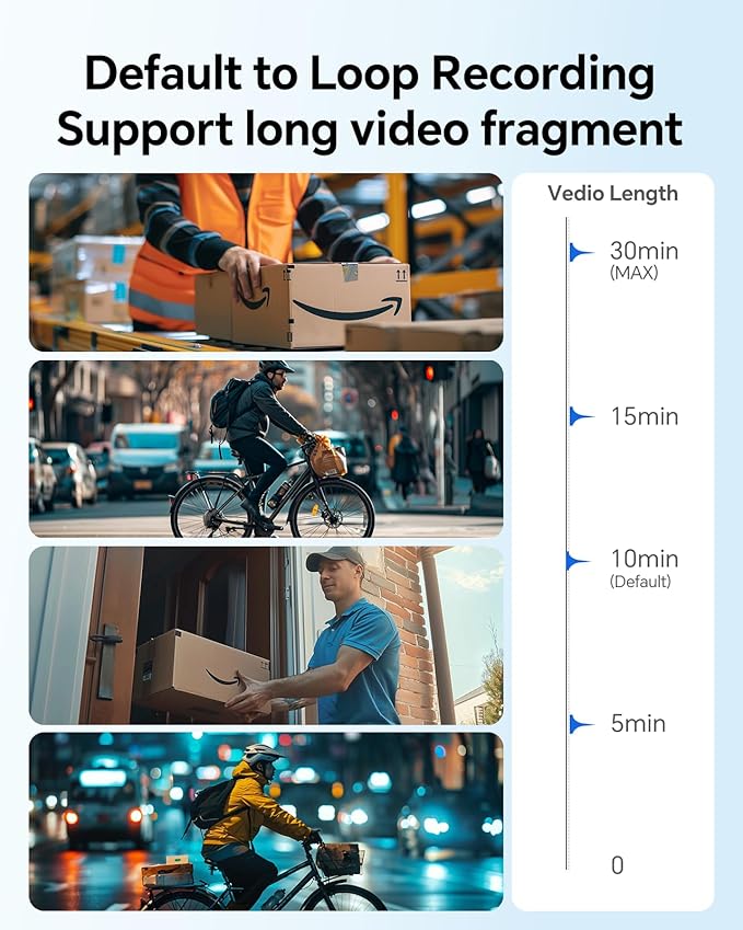 Loop recording ensures crucial moments: The BOBLOV KJ23PRO defaults to 10-minute video segments. When the memory card storage reaches its limit, the device will automatically overwrite the oldest recordings, ensuring that the latest important videos are continuously recorded