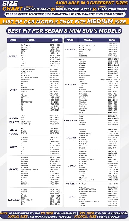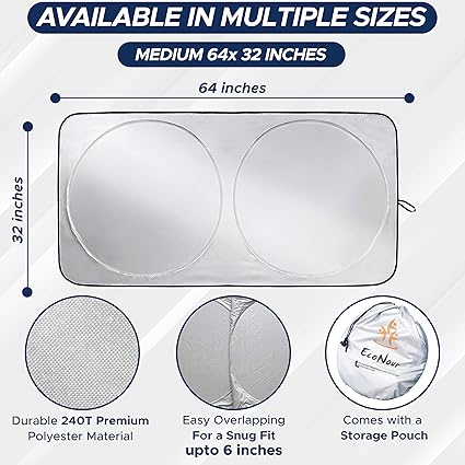 Choose the Right Fit: Available in multiple sizes, EcoNour’s shades for windows are tailored to fit various vehicle models. Refer to the size chart to pick the best car window shade for maximum protection.