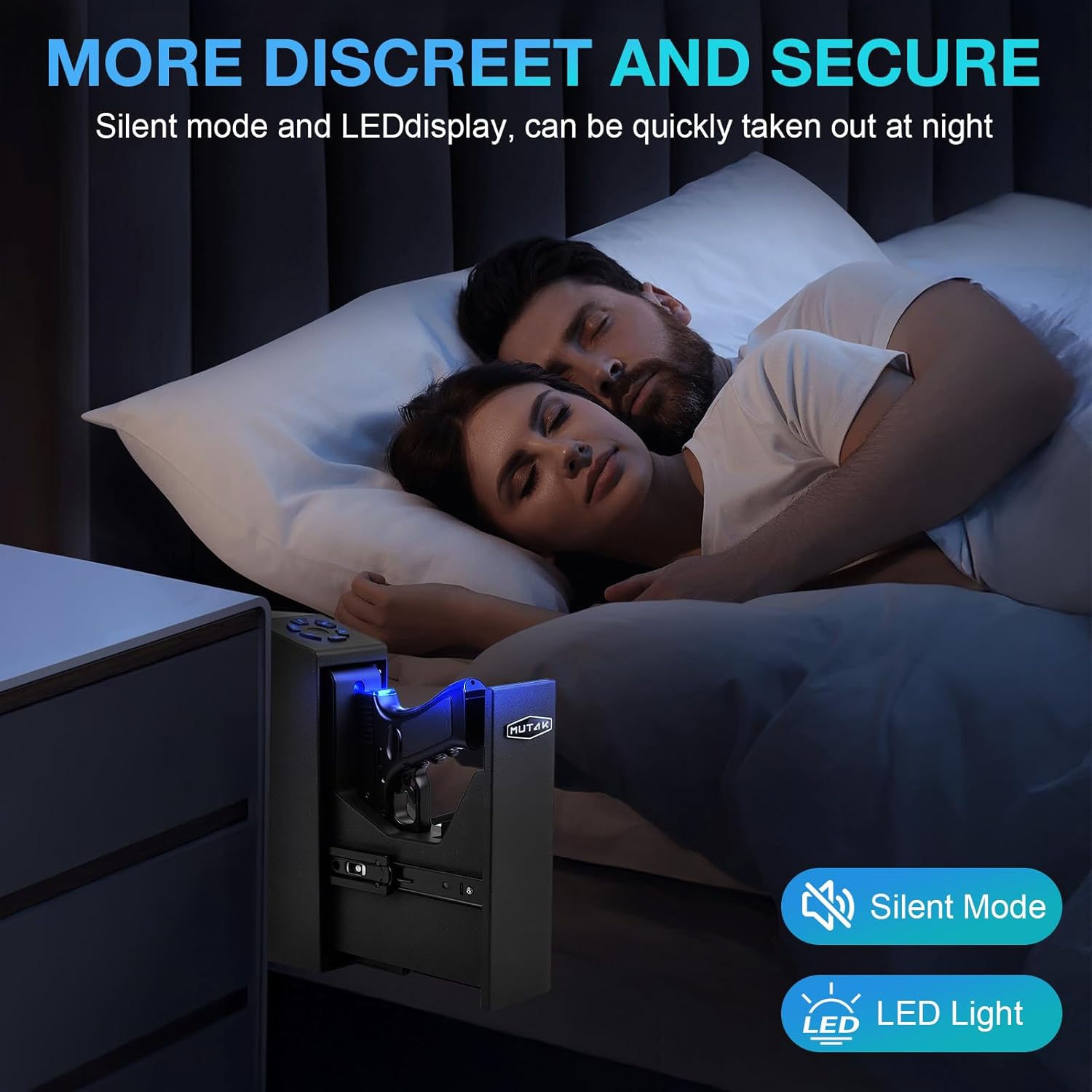 Smart App Management: Mutak Gun Safe have upgraded the unlock function with APP, Simply connect with your phone APP and slide the screen to quickly unlock the gun safe with one click. Easily set fingerprint and password, view operation records. You can check the remaining battery power in real time and adjust silent mode. Administrators can easily change unlock and link codes to ensure the secure handgun remains under your control.