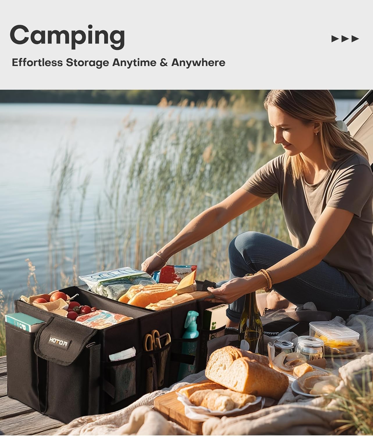 PORTABLE & SPACE-SAVING: When not in use, simply fold the SUV trunk organizer flat with the Velcro strips. The collapsible design is perfect for freeing up trunk space or storing the organizer neatly at home. An essential item for tidy travels.