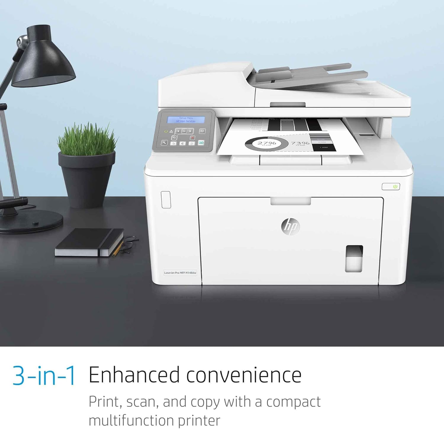 Uncompromising quality – Print, scan, and copy consistently high-quality documents with the HP LaserJet Pro M148dw all-in-one laser printer, HP’s best-value printer for automatic 2-sided printing
