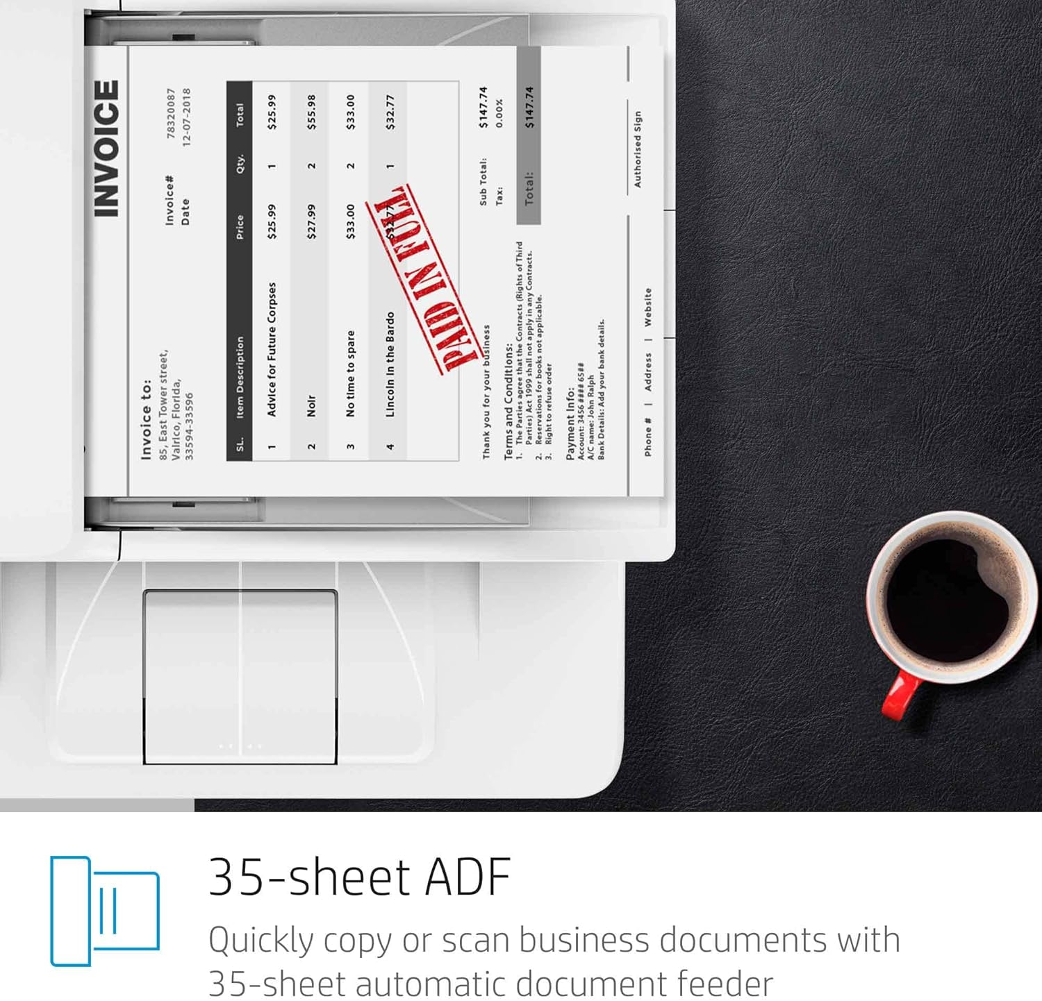 Speed through tasks – Stay productive with an auto document feeder, 250-sheet input tray and print speeds of up to 30 pages a minute from this laser printer scanner