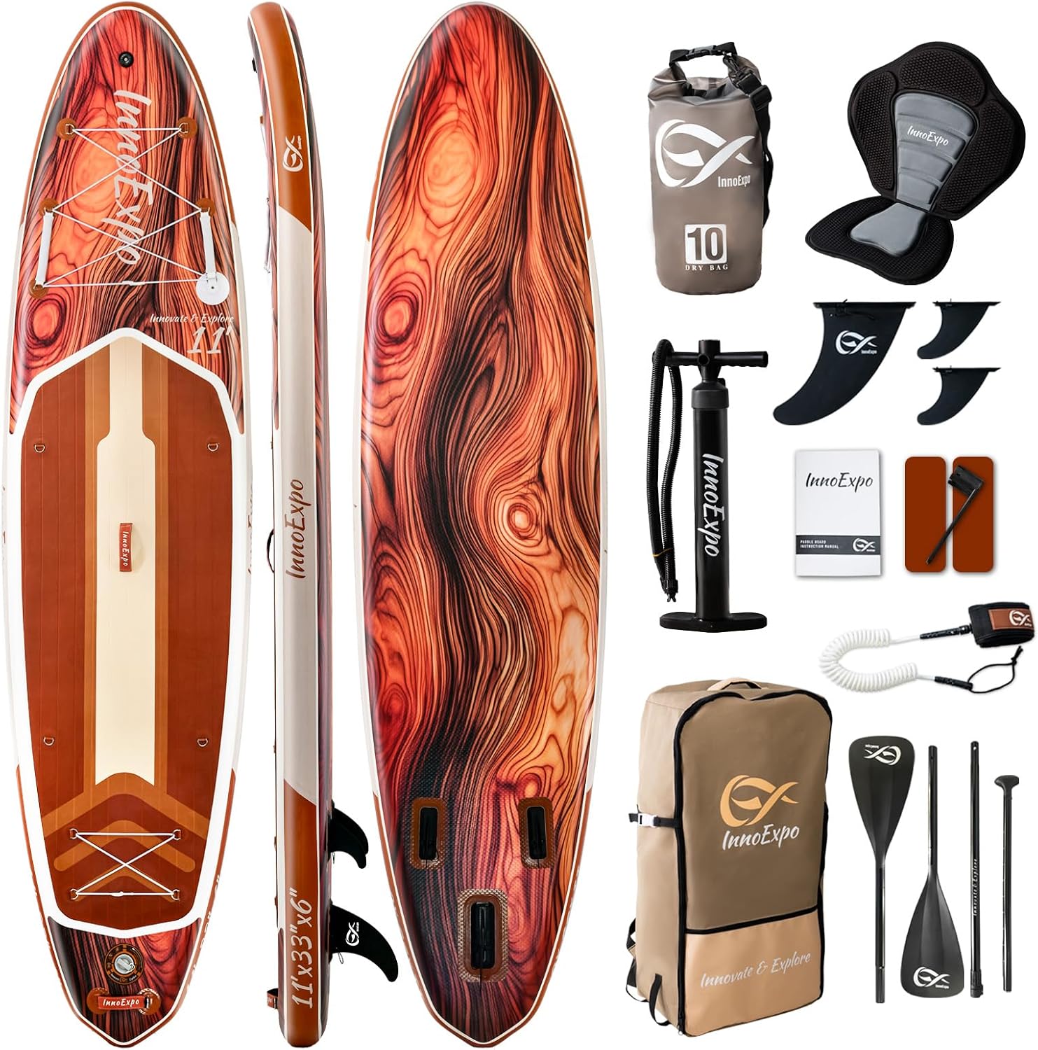 InnoExpo 11′ Inflatable Stand Up Paddle Boards with Premium Accessories