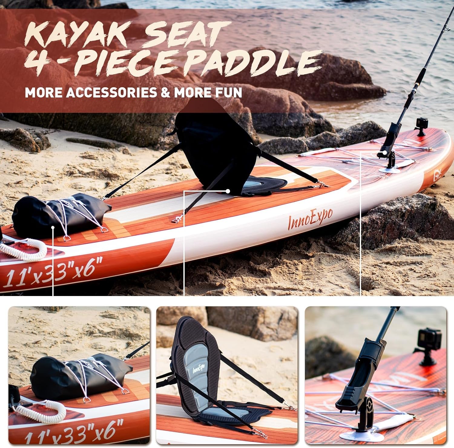 Innoexpo Paddle Boards With New Kayak Paddle Add-On: We Provide A 10L Dry Bag And A Convertible Kayak Seat – Upgrade Your Adventure.