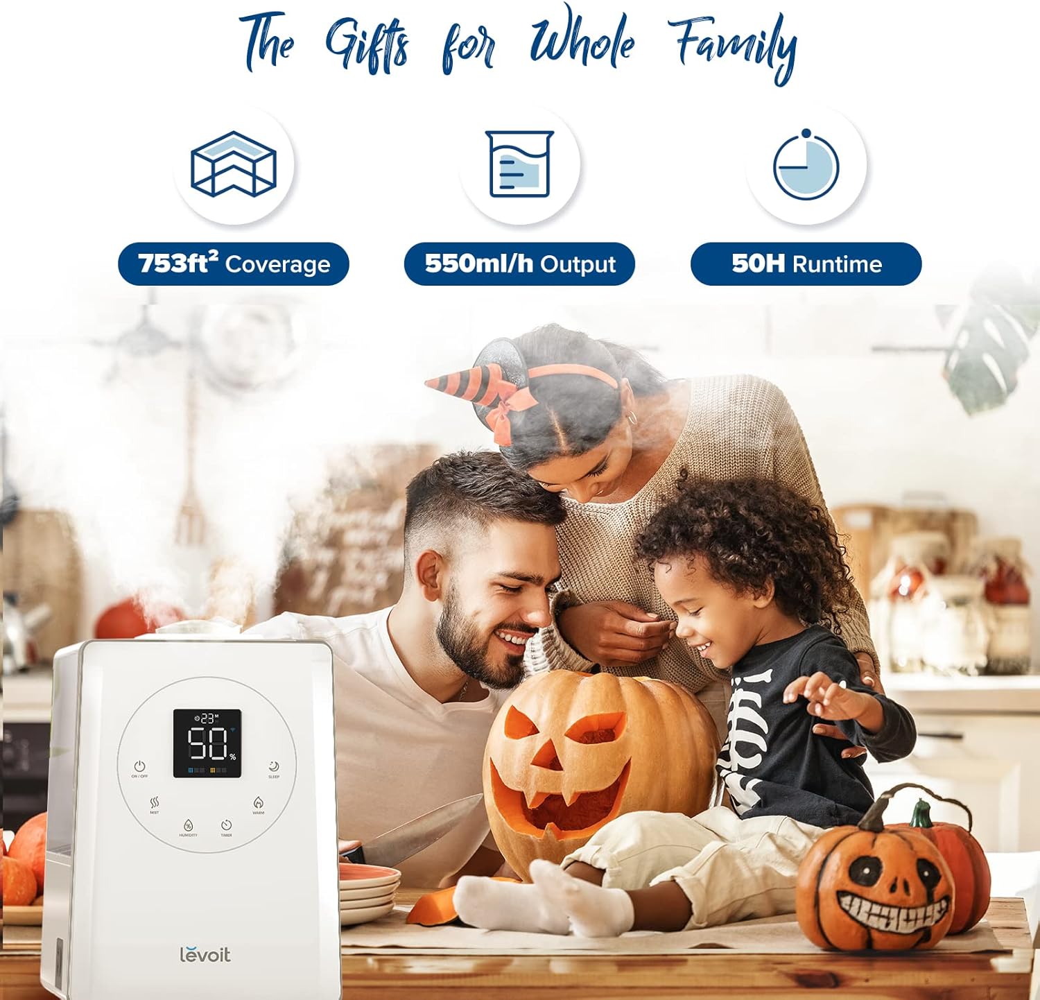 𝙈𝙤𝙞𝙨𝙩𝙪𝙧𝙚 𝙀𝙭𝙩𝙚𝙣𝙙𝙚𝙙 𝙞𝙣 𝙀𝙫𝙚𝙧𝙮 𝘾𝙤𝙧𝙣𝙚𝙧: Enhanced humidity throughout a 753-ft² room with both warm and cool mist for customizable comfort