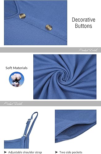 Design features: Adjustable Spaghetti Strap, Sexy V Neck Sleeveless, Button Front Decoration, Above-knee mini, High low hem, Casual Loose Fit Swing Tank Dress. Two handy side pockets you’ll love, make you have a relaxed feeling.