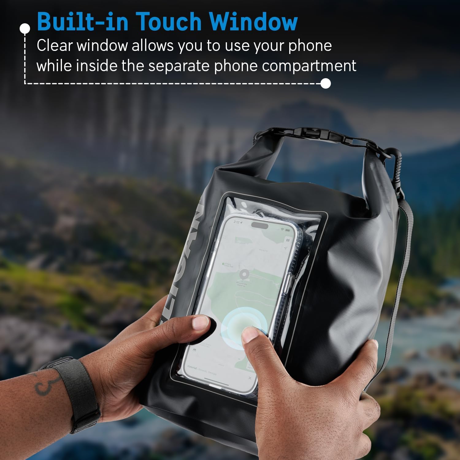 IP68 Certified Waterproof: With excellent water-resistant seal performance (IP68 rating), this fully sealed waterproof bag protects your phone and other belongings; The roll-top closure ensures a perfect seal, keeping out water, snow, dust, sand, & dirt