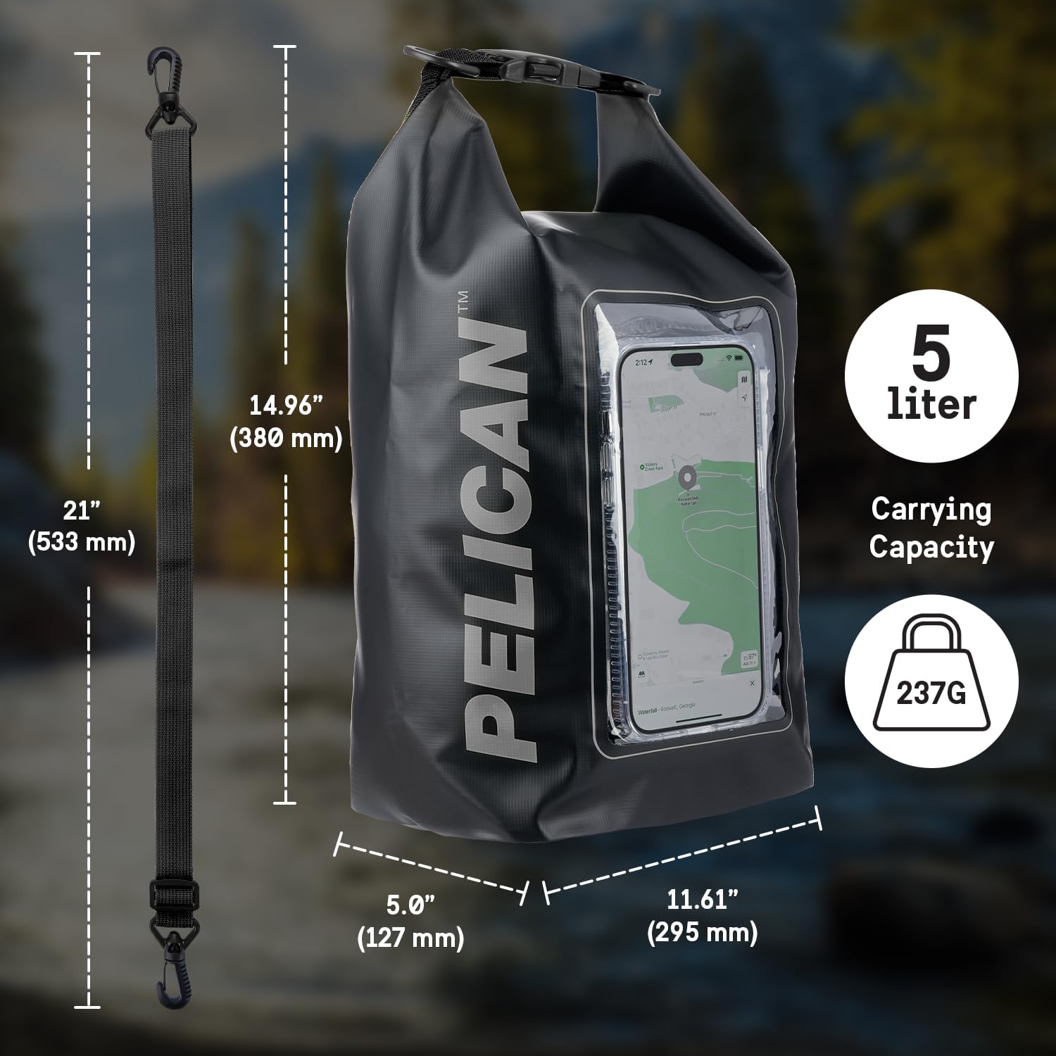 Pelican Marine IP68 Waterproof Dry Bag 5L – Roll Top Waterproof Backpack