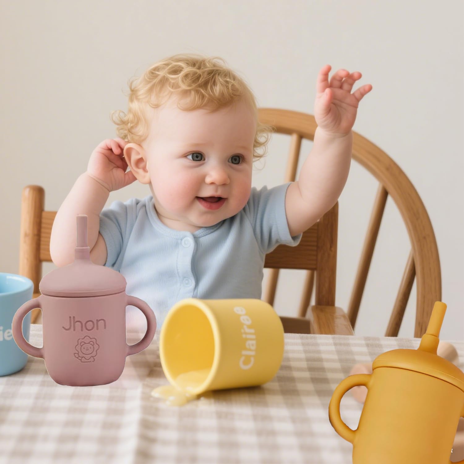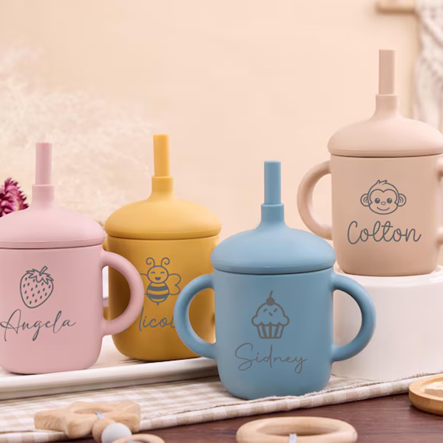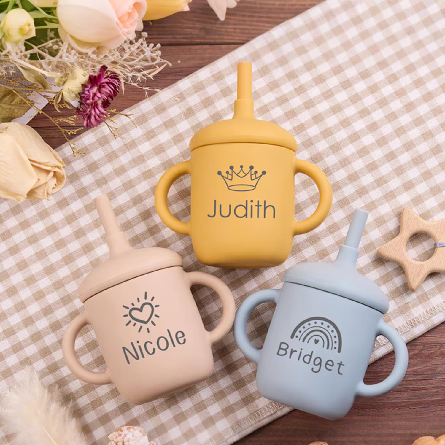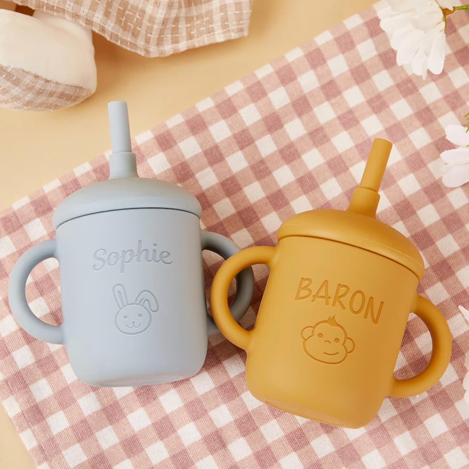 Customizable Touch: Choose to have your baby’s name or initials printed or engraved on the sippy cup with straw , creating a unique and thoughtful keepsake. Whether our customized baby silicone straw cup for a sippy cup for 6 month old or a sippy cup for 1 year old, this transition sippy cup ensures that your baby feels extra special, making every sip safe.