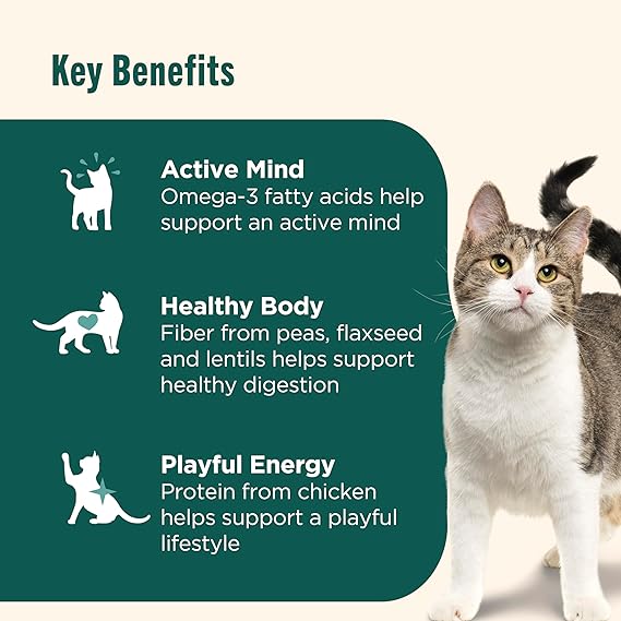 Dry cat food recipe includes real U.S. farm-raised chicken as the #1 ingredient