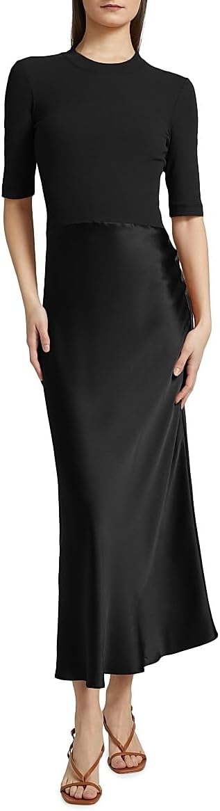 Crafted of cotton, this combo T-shirt dress from Rosetta Getty is styled with a crewneck, short sleeves, and a satin maxi skirt.