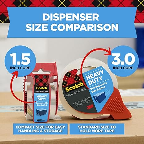 PACKING TAPE: 1 roll of Scotch Heavy Duty Shipping Packing Tape with a dispenser for convenient application offers excellent holding power for your moving, packing and shipping needs