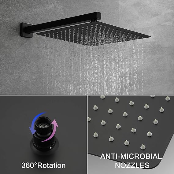 Our Premium Shower Fixture Including 12 inches square rain shower head(SUS304 Stainless steel), handheld shower head(Brass), 15.7 inches shower arm(Brass), 59-Inch shower hose(High quality PVC ), shower holder(Brass), shower mixer valve body(Brass) and other necessary installation parts