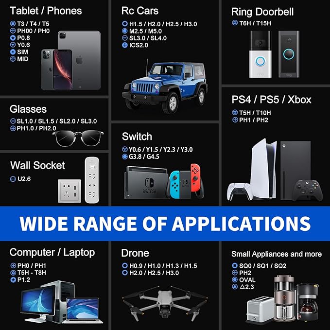 64-in-1 Precision Screwdriver Set: This small screwdriver set includes 48 bits (Phillips, Flathead, Torx, Torx security, Triwing, Pentalobe, Hex, Triangle, U-type, Square, SIM, MID, OVAL, Gamebit, Nut driver). It’s a complete electronics repair kit that has been professionally designed to repair computers, PC, laptops, Macbooks, tablet, phones, PS4 PS5, XBOX, Switch, eyeglasses, drone, watches, Ring doorbells and more