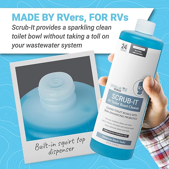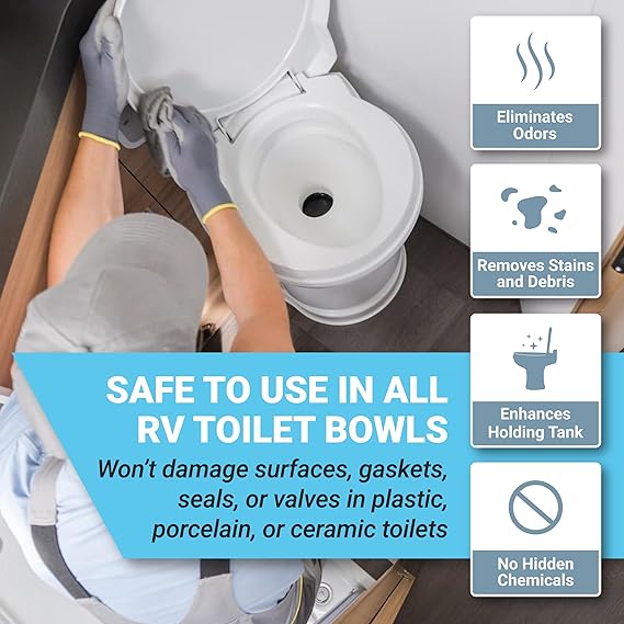 Scrub-It will not damage seals, valves or gaskets and will actually help lubricate them. Safe for porcelain, ceramic and plastic bowls in RVs and boats, complies with all state dumping laws.