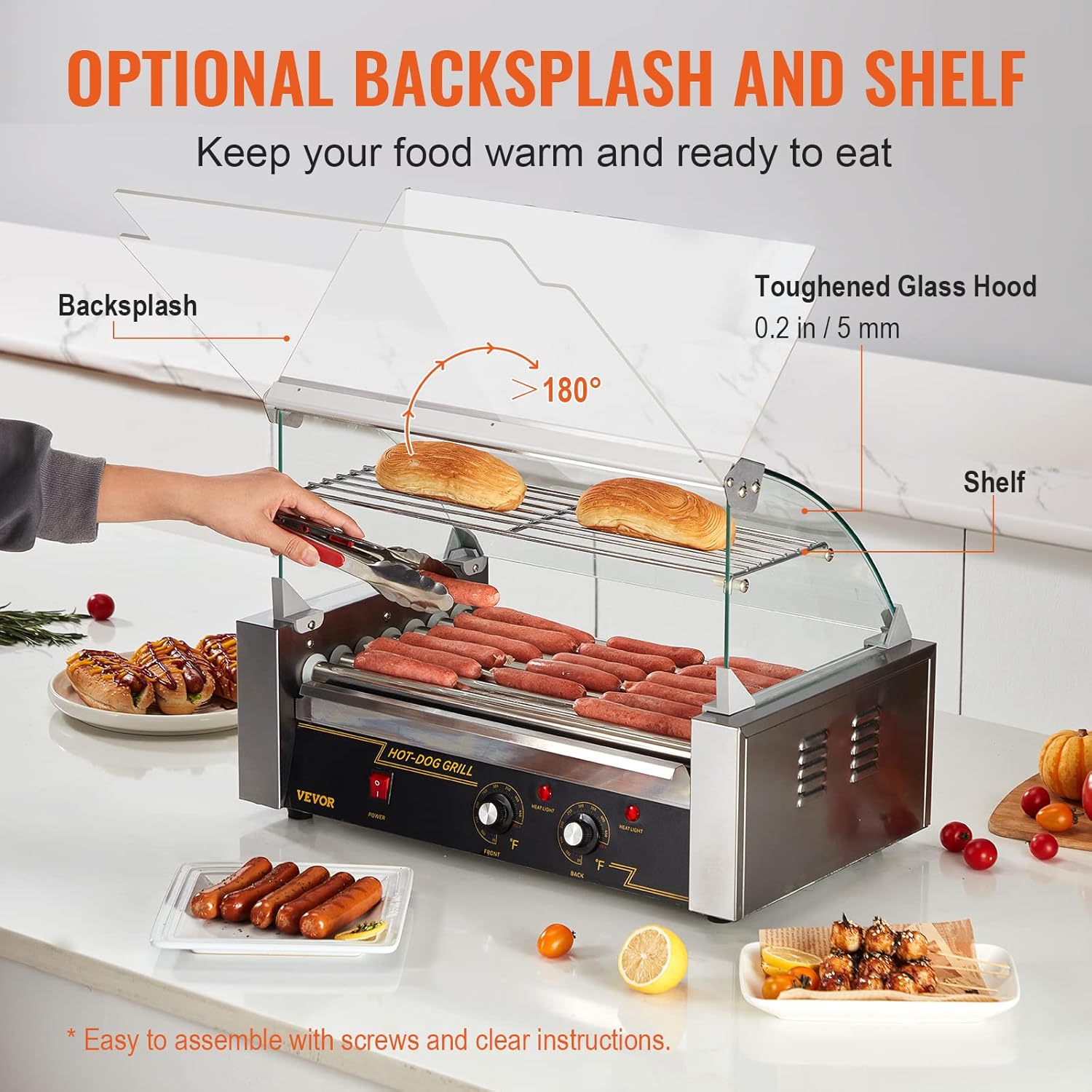 360-Degree of Flavor: Due to the three-point chain design, the rollers of this hot dog machine can rotate 360° to cook food evenly. Besides, the 1050W powerful motor offers high-efficient cooking so that you can enjoy hot dogs within 15 minutes. You will be ready to have round two prepared in no time.