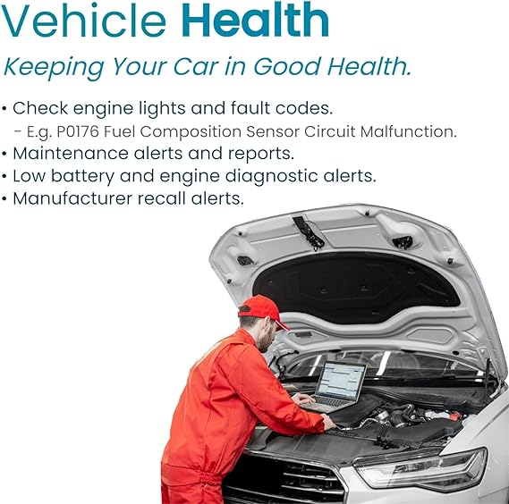 Real-time Geofence zone, vehicle OBD diagnostics, maintenance, recall, and fuel economy and fuel level (if available). Curfew Hours notifications upgrade.