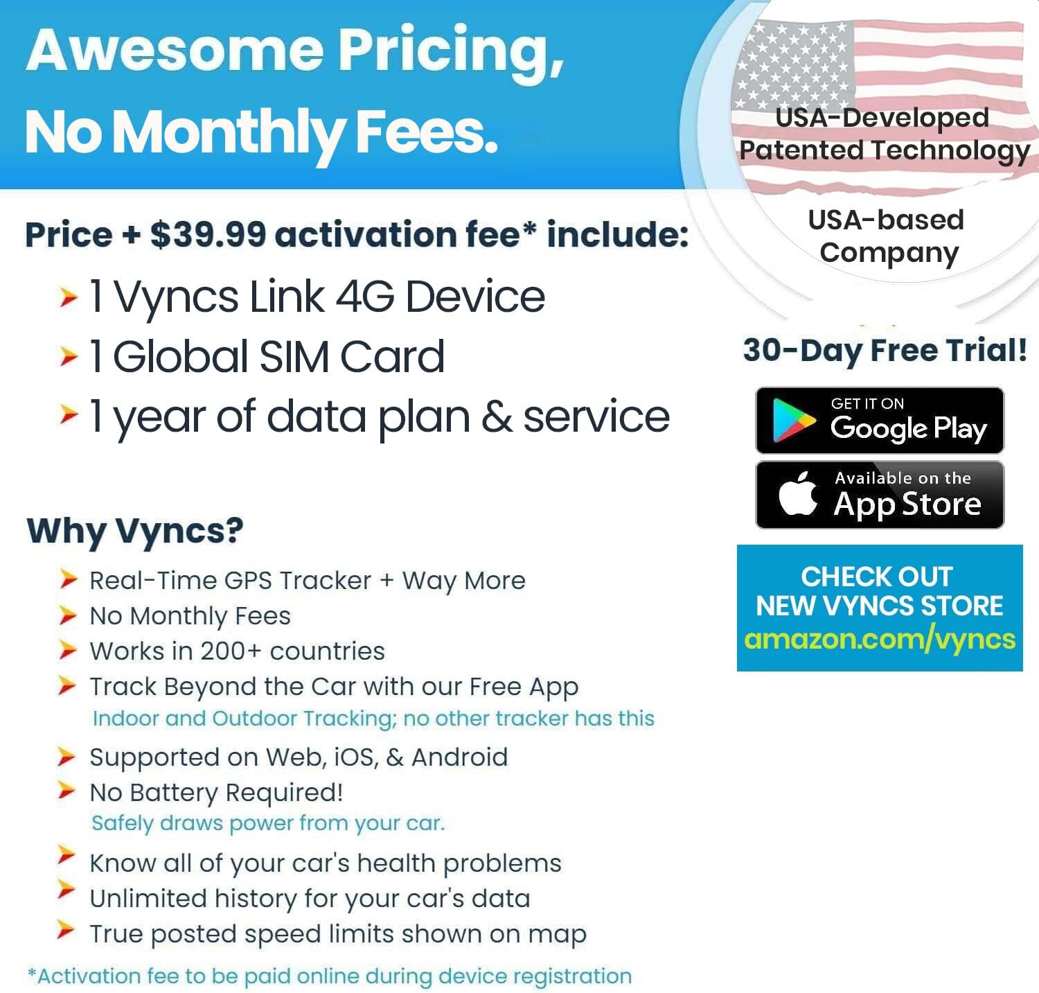 - Vyncs has no monthly fee.