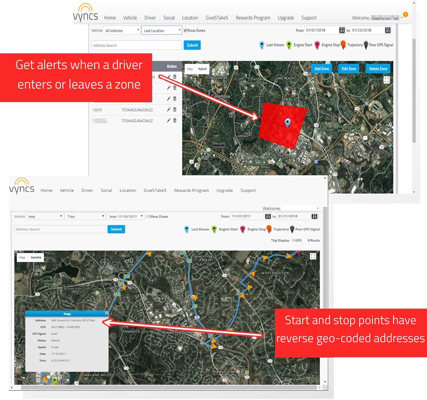- Vyncs Pro: Vyncs Basic with 60 seconds GPS update and Live Map Auto Refresh (map automatically refreshing as new GPS data comes in).