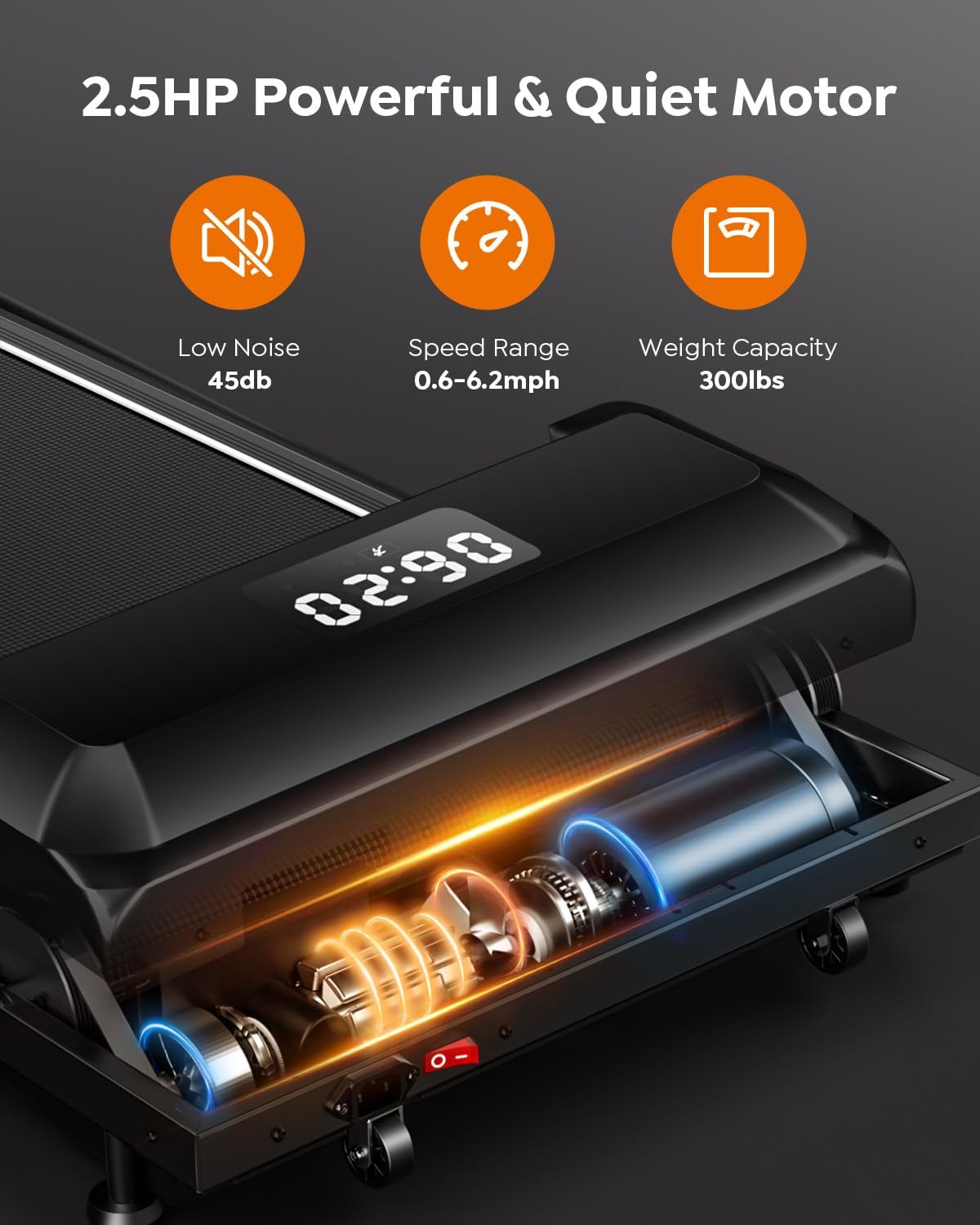 Powerful and Quiet Motor: Incline walking pad treadmill boasts a robust 2.5HP motor, supporting up to 300 lbs. With a speed range of 0.6-6.2MPH, which can meet the fitness needs of you and your family at different stages better. Built-in cooling system and ultra-quiet operation, ideal for home and office use to achieve a combination of health and efficiency effortlessly. Easy to maintain your exercise routine even inclement weather!